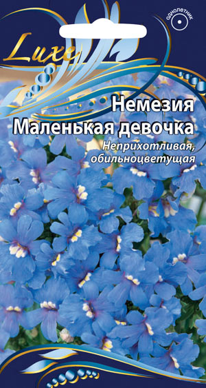 Долго цветущий и неприхотливый почвопокровный однолетник высотой до 20 см. Многочисленные ярко-синие соцветия, диаметром до 8 см, с белым пятнышком в центре возвышаются над зеленой листвой и буквально завораживают своей красотой.